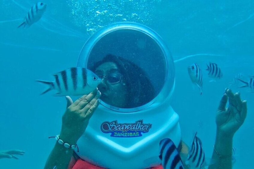 With a special helmet oxygen system, you’ll descend a few meters into calm waters and enjoy 30–45 minutes of effortless underwater walking while surrounded by tropical fish. Safe, fun, and unforgettable — this is a must-do activity in Nungwi!