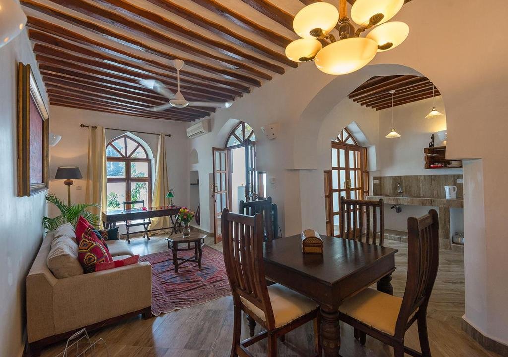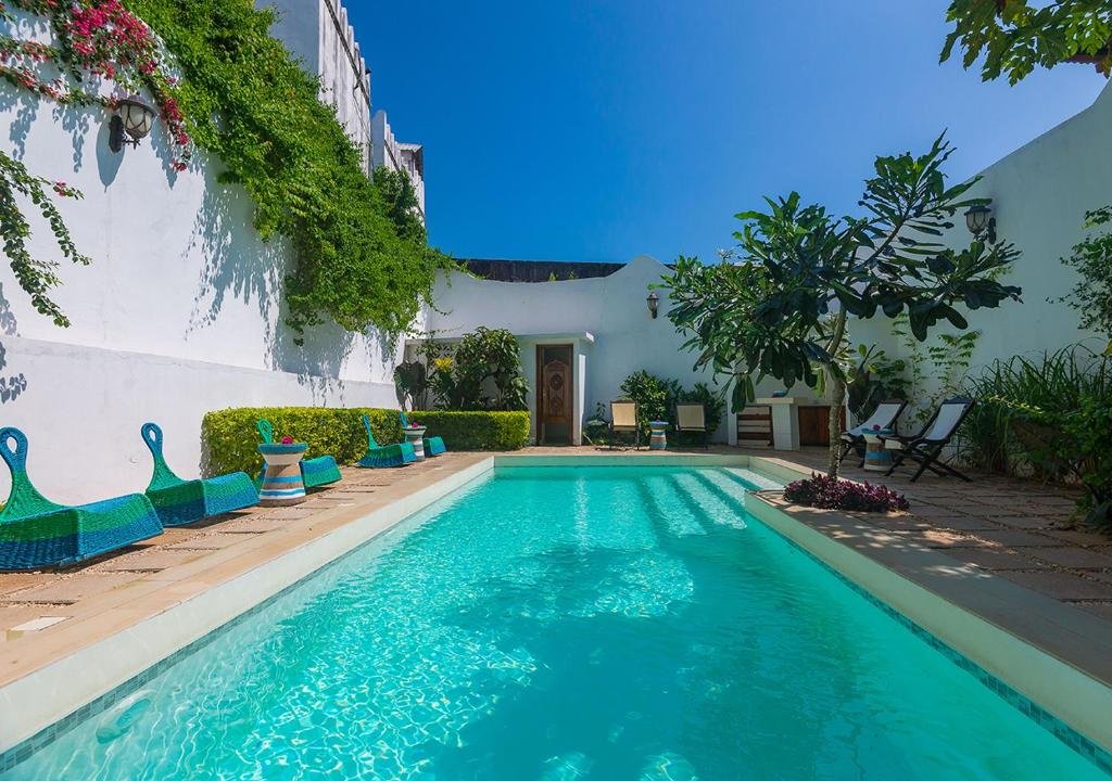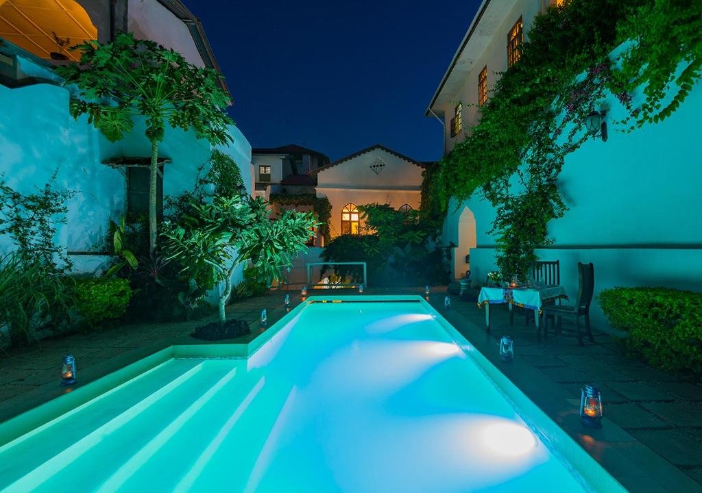 The Seyyida Hotel & Spa is a boutique property on the edge of Stone Town, blending Swahili-Arab-Portuguese architecture with modern comfort. Its carved doors, marble floors, courtyard areas, and rooftop with panoramic harbour views create a charming atmosphere. The hotel offers 17–19 en-suite rooms featuring AC, satellite TV, minibar, tea/coffee facilities, WiFi, safes, and mosquito nets, with some rooms offering balconies or sea views. Guests enjoy a rooftop restaurant and bar, outdoor swimming pool, full-service spa, free breakfast, and reliable guest services including 24-hour reception, concierge support, laundry, room service, and tour arrangements.
