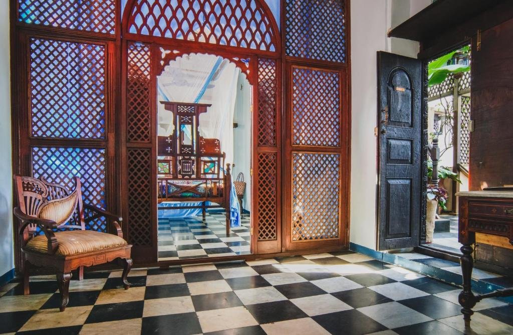 Emerson on Hurumzi is a restored 19th-century merchant’s palace in Stone Town, showcasing Swahili-Arab heritage through antique furniture, carved doors, vibrant décor, and an “Arabian Nights” ambiance. The boutique hotel offers about 24–30 individually styled rooms featuring four-poster Swahili beds, stone or semi-open bathrooms, ceiling fans or AC, and traditional décor. Its iconic rooftop Tea House offers 360° views and sunset dining with Swahili-influenced cuisine. Rooms are spread across connected heritage buildings accessed by wooden staircases, adding to the hotel’s charm and historic character.